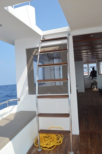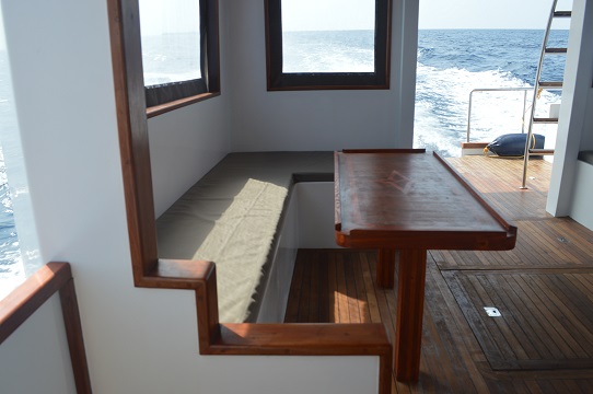 The interiors of the vessel were designed with comfort and freedom. greatly facilitated by easy access where you will find more than enough space for your gear and toys. This dive yet multipurpose vessel has state-of-the-art marine fittings and equipments. Specially giving you as a customer the choice to customize the interiors as you wish.