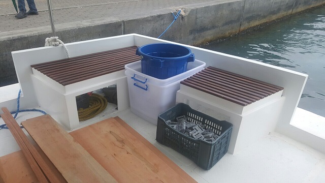 Plenty of deck space, bench seating and tank holders sums up the 65ft fiberglass marvel of a dive vessel. Our largest and latest Dive Vessel Design.